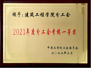 近日,从校工会2022年工作部署、表彰会暨工会干部能力作风建设工作推进会上传来喜讯,建筑工程学院分工会以全校第一名的好成绩,荣获2021年度分工会考核一等奖。学院分工会已连续两年蝉联第一。