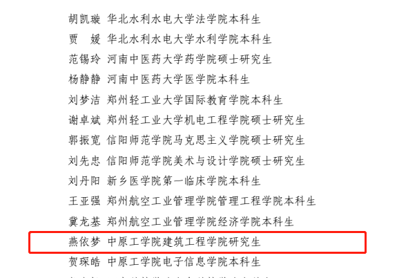 近日,由中共河南省委教育工委开展的全省高校“大学生党员标兵”评审结果揭晓。经学校推荐、省委教育工委评审,我院20级研究生燕依梦荣获“大学生党员标兵”称号。