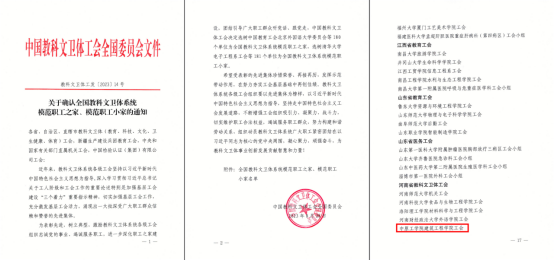 8月28日,中国教科文卫体工会全国委员会下发了《关于确认全国教科文卫体系统模范职工之家、模范职工小家的通知》,我院分工会被中国教科文卫体工会全国委员会授予“模范职工小家”荣誉称号。